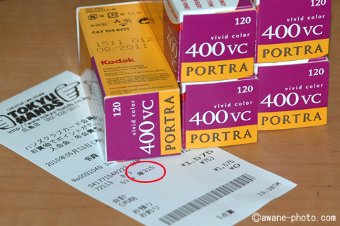 さて,「HOLGA」用に「東急ハンズ」が用意してくれているフィルムは,KODAKの「T-MAX 400」と「PORTRA 400VC」の2種類である。露出やピントの調整がほとんどできないトイカメラには,高感度のネガフィルムを使うのが,1つのセオリーということだろう。また,「PORTRA 400VC」が選ばれているのは,その派手な発色が期待されているものと思われる。問題はそれらのフィルムの価格だ。どちらも1本315円。あれ,120フィルムの価格って,そんなものだったっけ?