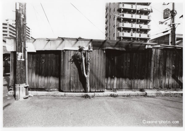 そこで今日は,板塀をさがしてみることにした。するとさっそく,板塀のすきまから,なぜか木が生えているところに出会うのだった。