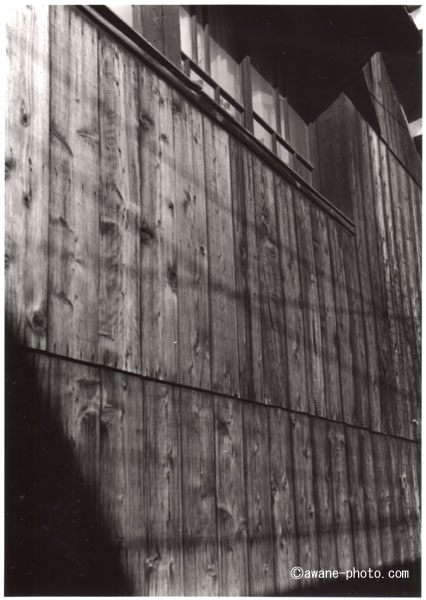 Korelle, Radionar 7.5cm F4.5, ACROS100 / EL-NIKKOR 75mm F4.5, FUJIBRO WP FM3子どもの遊び場として適していないだけではない。この県道には,およそ歩道というか歩行者のためのスペースがなく,のんびり歩くにも決して適したところではない。一言でいえば,歩行者にやさしくない道である。かつてはメインストリートだったはずだが,クルマの交通量の増加にともなって歩行者が追い出されてしまったのだろう。あたらしく国道(現在の国道183号線)ができて,クルマのメインストリートの座をそちらに譲ったはずだが,それでも少なくないクルマがこの道を通るわけである。