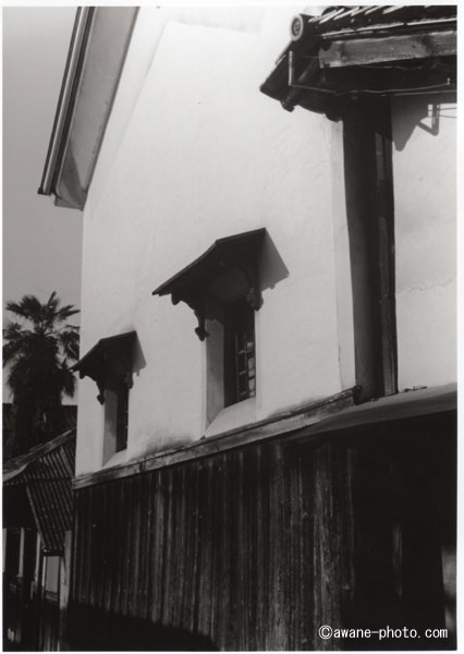 Korelle, Radionar 7.5cm F4.5, ACROS100 / EL-NIKKOR 75mm F4.5, ILFORD MGIV RCこの路地を通り抜けると,安川緑道に出る。安川の一部を廃川にしたあとを,緑道として整備したものだ。この緑道はまだあたらしくて木が茂っていないせいか,日陰が少ないのが欠点といえば欠点である。もっとも防犯上は,木があまり茂っていないほうがよいという考え方もあるので,今後,この緑道に日陰が増えるのかどうかはわからない。 Korelleのようなセミ判のスプリングカメラでは,120フィルムで16カット撮ることができる。のんびり歩きながら,気になったものに向けてシャッターを切る,という使い方には手頃な枚数だ。露出もピント調整もすべてマニュアル操作,とくにピント調整は目測式なので,「だいたいこんなもんかな」と割り切れる性格の人であれば,軽快に撮り続けることができるはずだ。 |