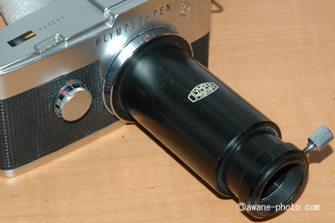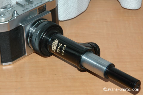 そもそも,オリンパスといえば「顕微鏡」である。オリンパスは,古くから顕微鏡での撮影に対応するための部品を用意していたようだ。たとえばこの「PM-5」というものは,ちょうどオリンパスワイドIIにぴったり装着できるようになっている。