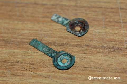 これらを含めて,電池ボックスの蓋を,仮に組みたててみる。すると,電池ボックスの蓋には2本のバネがつき,そこから例のピンに,金属片が接するようになることがわかった。