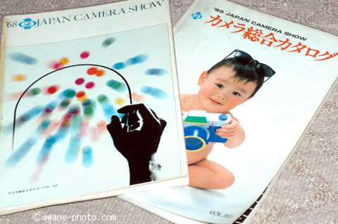 1968年版と1985年版の日本カメラショー「カメラ総合カタログ」。 「OLYMPUS TRIP35」は,長年にわたって掲載されつづけてきた。