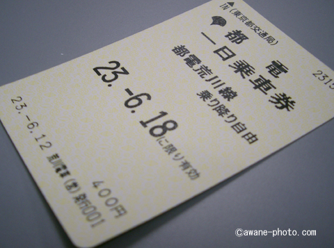 荒川線には,東十条駅の1つ手前である,王子駅前から乗る。今日は遊びに来たわけではないので,何度も乗り降りするかどうかはわからないが,400円の「1日乗車券」を購入する。都電荒川線は,大人1回160円。「三ノ輪橋」まで往復すれば,王子駅前→三ノ輪橋で160円,三ノ輪橋→王子駅前で160円,あわせて320円。それだけしか乗らないならば,400円の「1日乗車券」は高くつくのだが,乗るときにいちいち小銭を用意しなくてもいいから,「1日乗車券」を利用する。都電荒川線はSUICAに対応しているものの,ICOCAは使えないからしかたない。