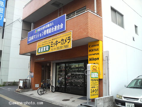 今日の午前中は広島市内中心部方面で用事があったが,午後からはとくに予定はなかったので,移転した「カメラのミッキー」へ行ってみることにしたのであった。「カメラのミッキー」の移転を知ったのは,つい先週のこと。しかもその日は,定休日(2011年6月29日の日記を参照)。あたらしいお店を覗くのは,今日がはじめてとなったのである。