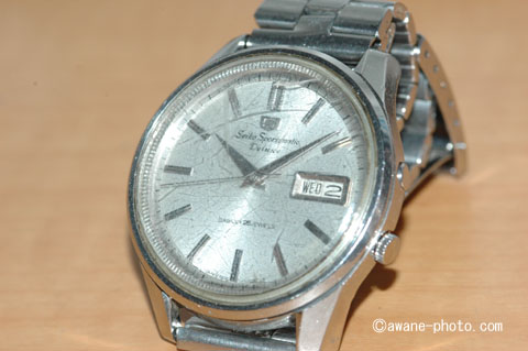 2011年11月02日(水) 天気:曇スポーツマチック5デラックスの裏蓋は固いセイコー「スポーツマチック5デラックス」は,当時としてはそこそこ「よい」ものだったと思われる。見た目もしっかりしているし,カレンダーや自動巻きなど,機能も充実している。しかし私は,この時計を常用しようとは考えていない。なんといっても,昨日の日記でも書いたように,「重い」のだ。また,私自身,大きな時計はあまり好きではない。腕が太いほうではないので,そもそも大きな時計は似合わないだろう。「スポーツマチック5デラックス」は,私にとって重すぎるのみならず,大きすぎるし,厚すぎるのである。