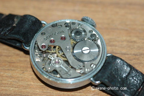 手がかりになる番号がなにもないのだが,1960年代以降,セイコーは独立した秒針が下部にある「スモールセコンド」の製品を発売しなくなっていたので,この時計は1950年代あるいはそれ以前のものだろう。