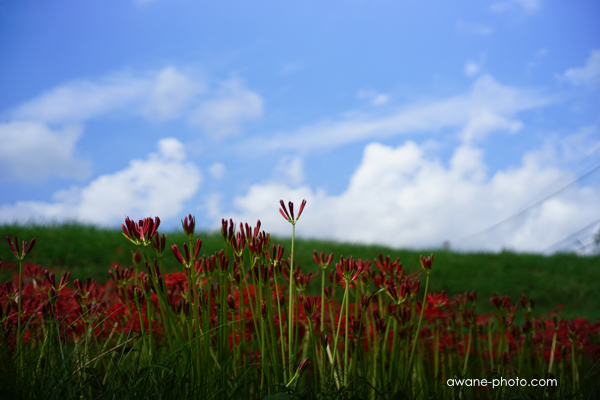 SONY α7, NOKTON classic 40mm F1.4 MCさて,今朝まで降っていた雨があがり,よく晴れた空が広がっている。いつもの川の土手へ行き,ヒガンバナを眺めてみることにする。土手の下から見上げるようにすると,背景に建物などがあまり入ってこずに,すっきりした画面が得られる。